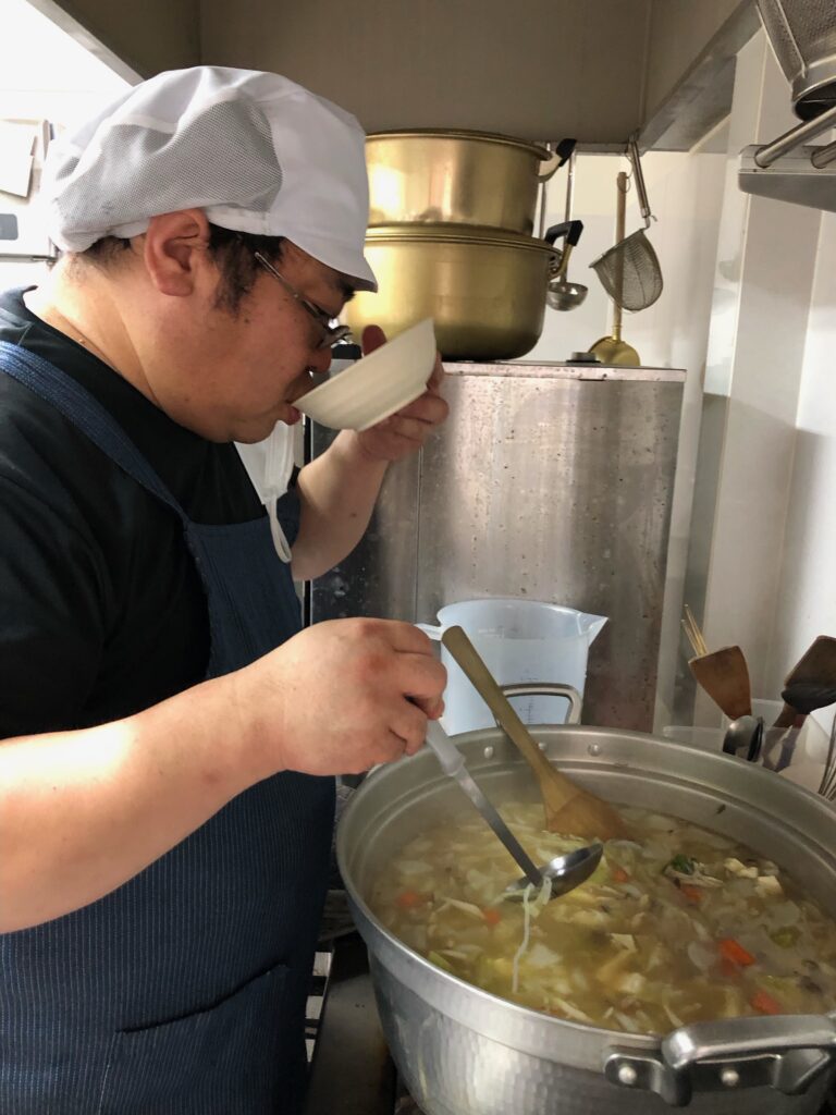 厨房のお兄さんが大きな鍋に変えてくれて、味付けもしてくれましたよ~(⌒∇⌒)