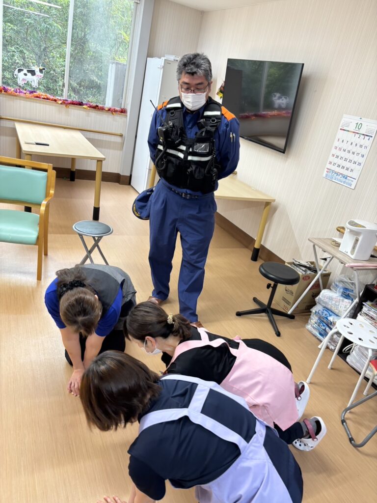 最初は緊張感の中行っていましたが、消防隊の方々が気さくで優しく、職員もリラックスして学べて充実していました。