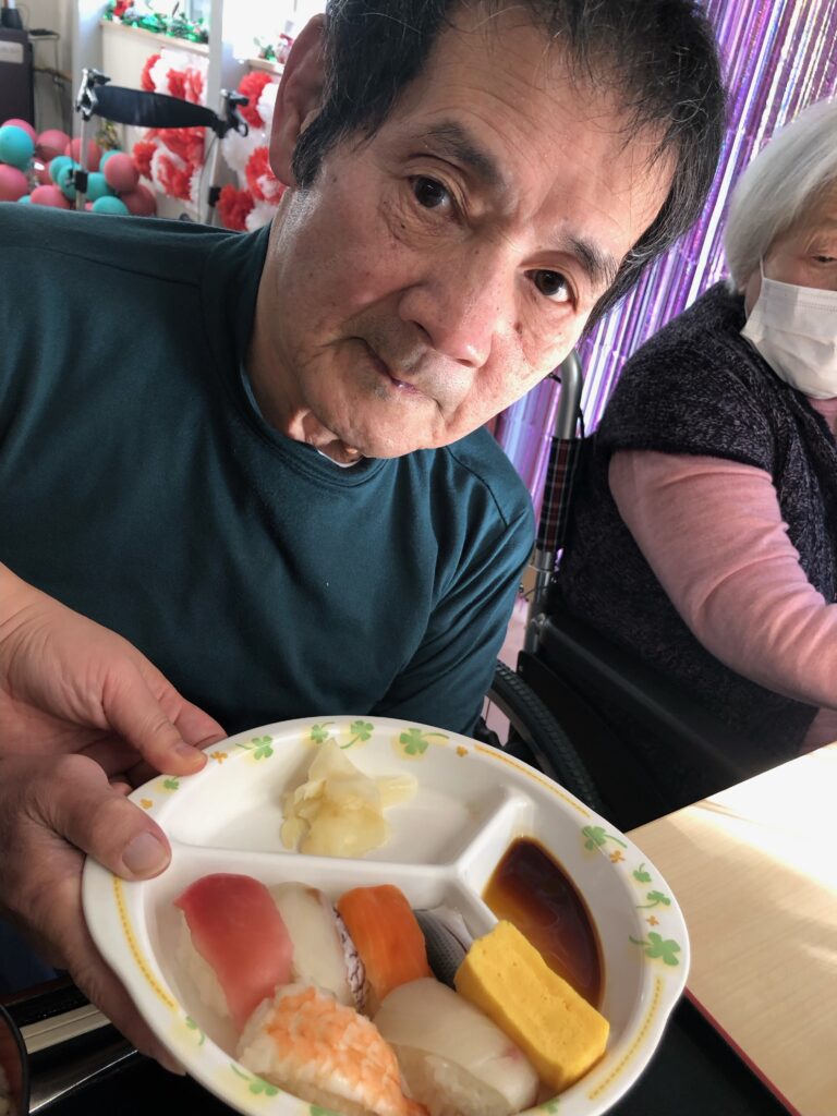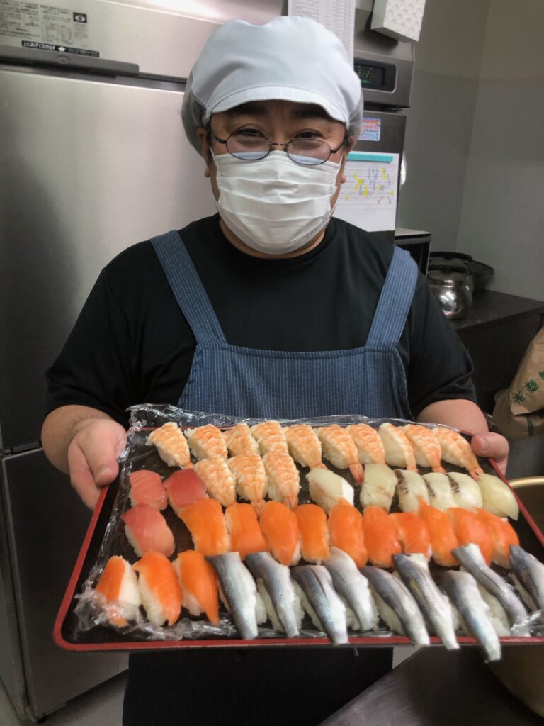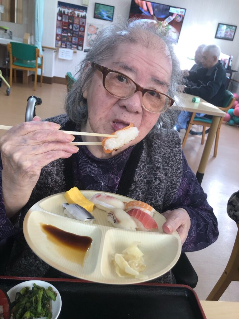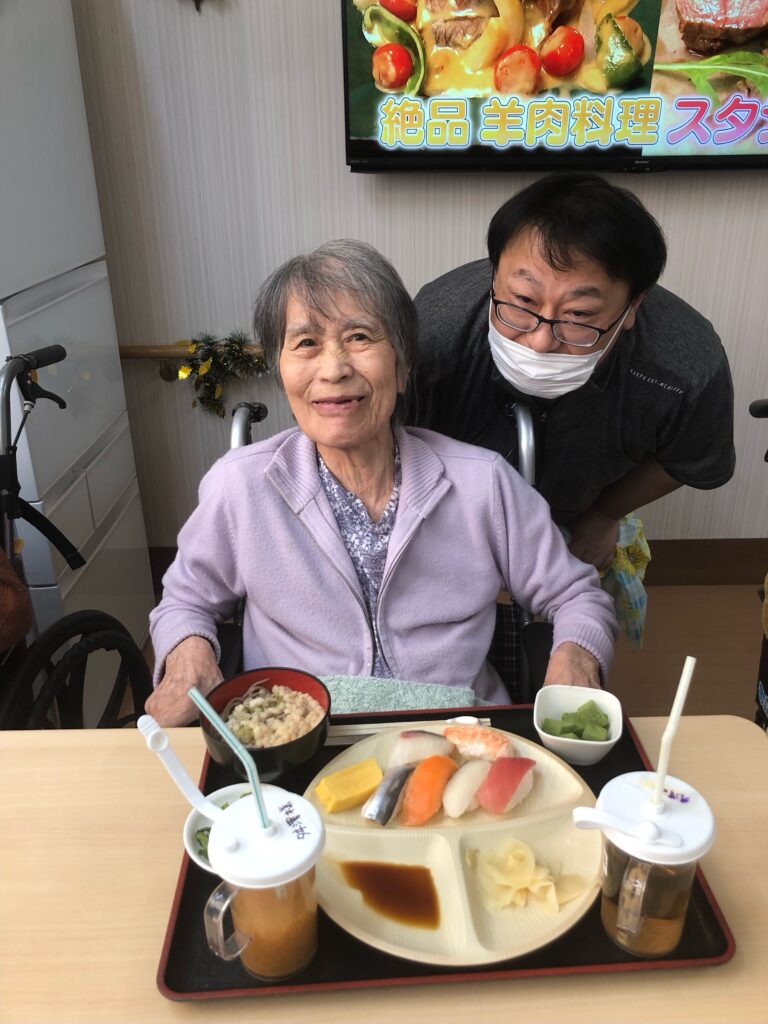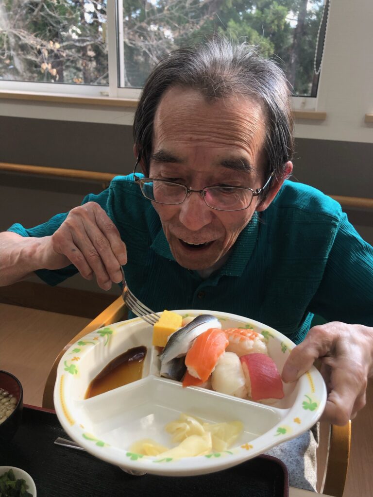 まさか施設で握りたての寿司が食べられるなんてと