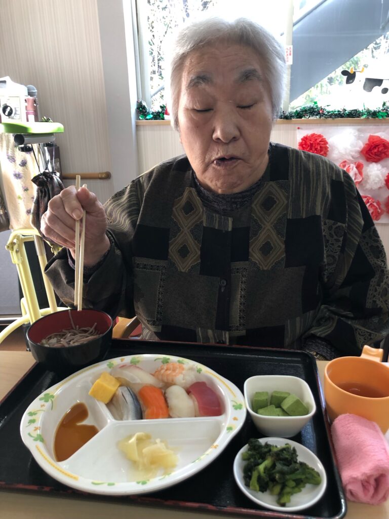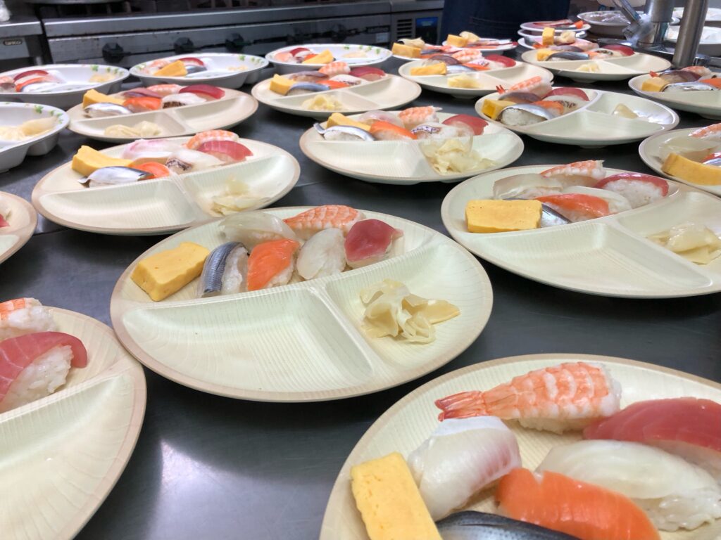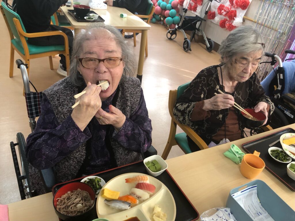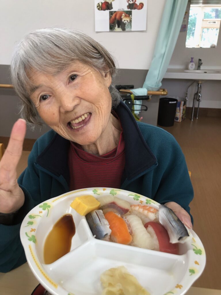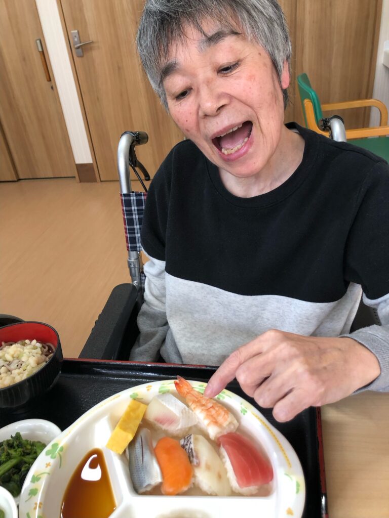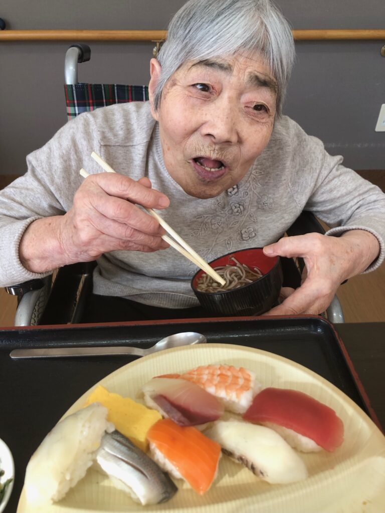 まさか施設で握りたての寿司が食べられるなんてと
