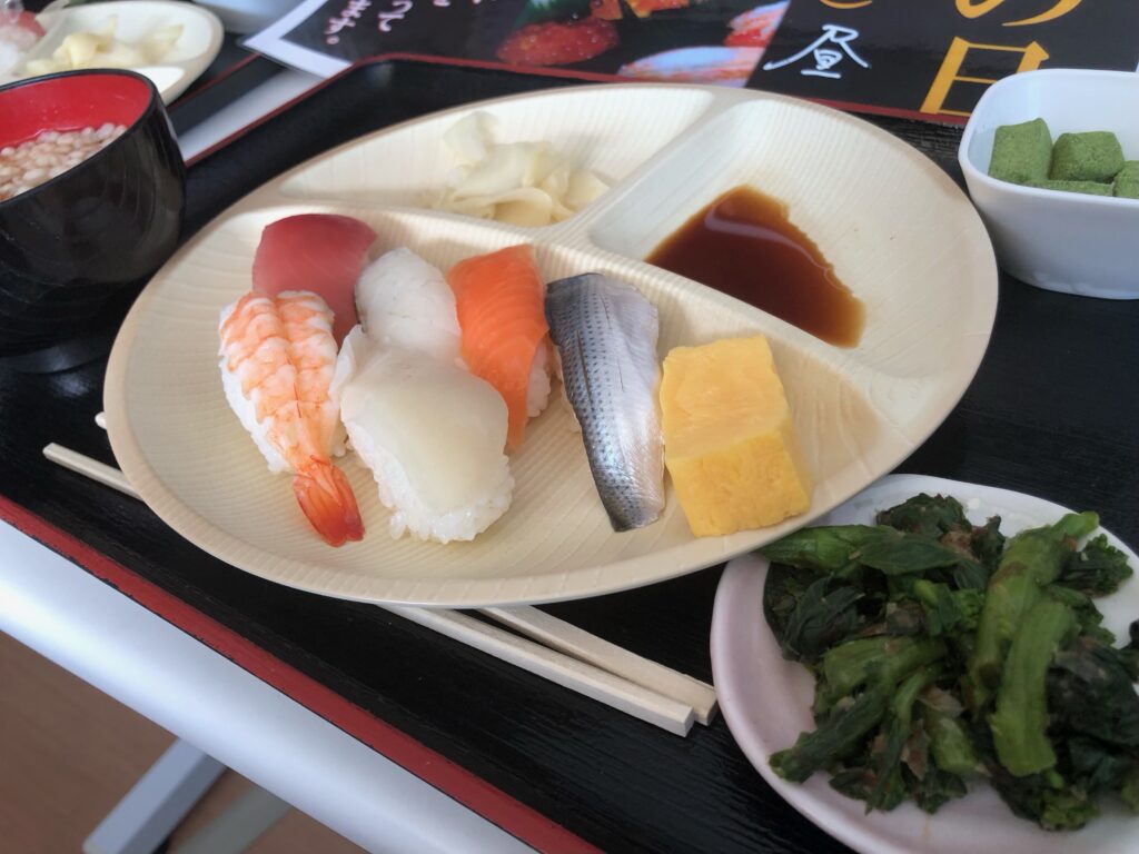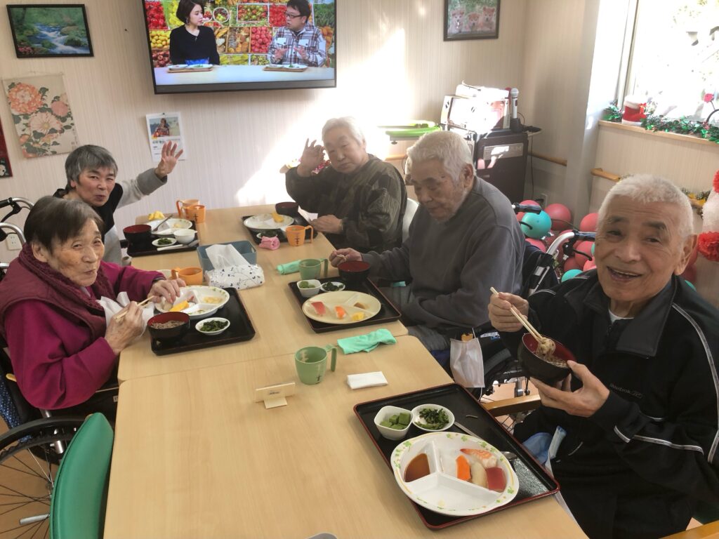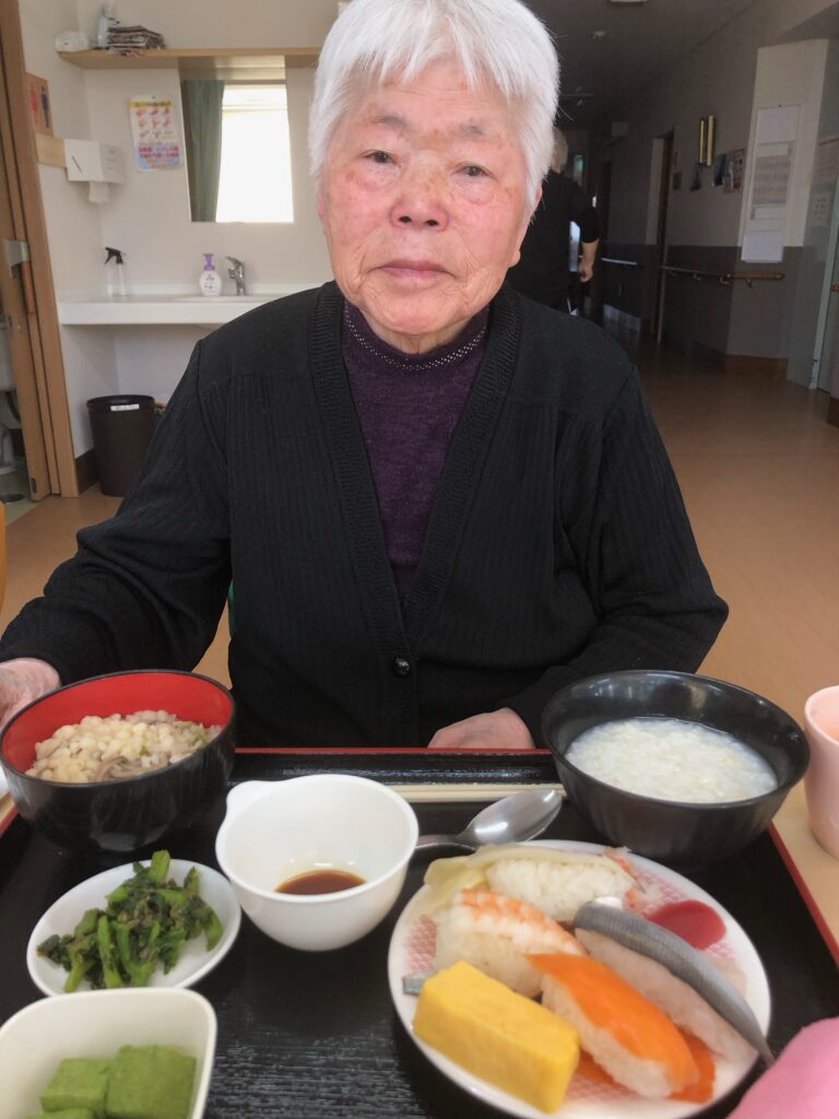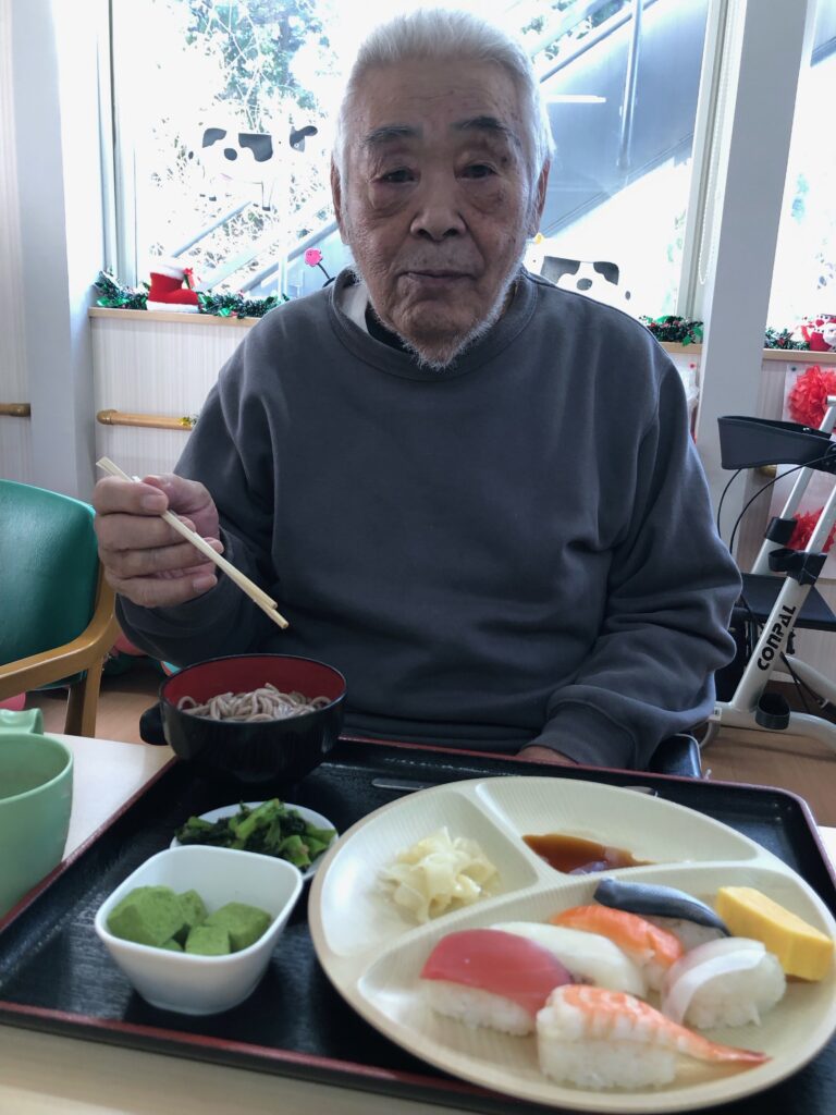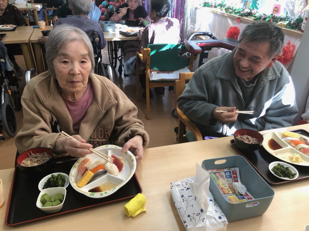 まさか施設で握りたての寿司が食べられるなんてと