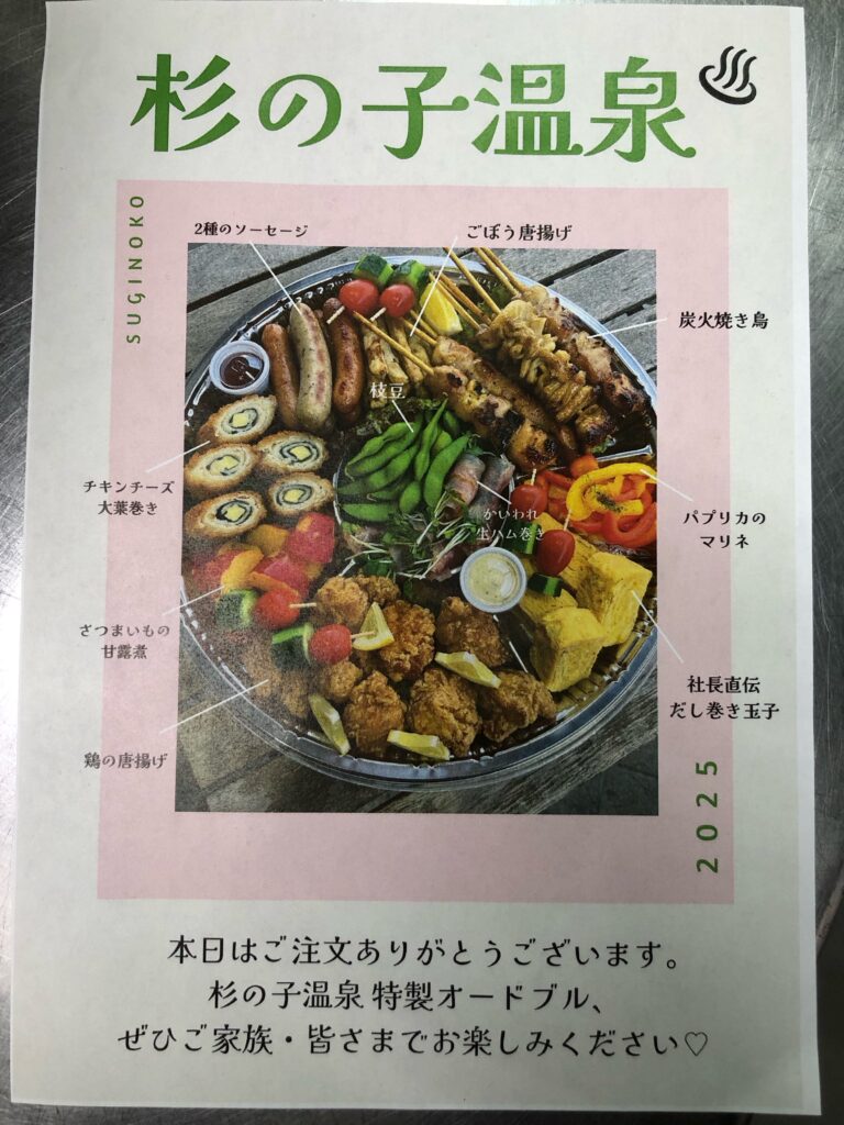 テレビCMでお馴染みの、杉の子温泉さんからのオードブル~🍴