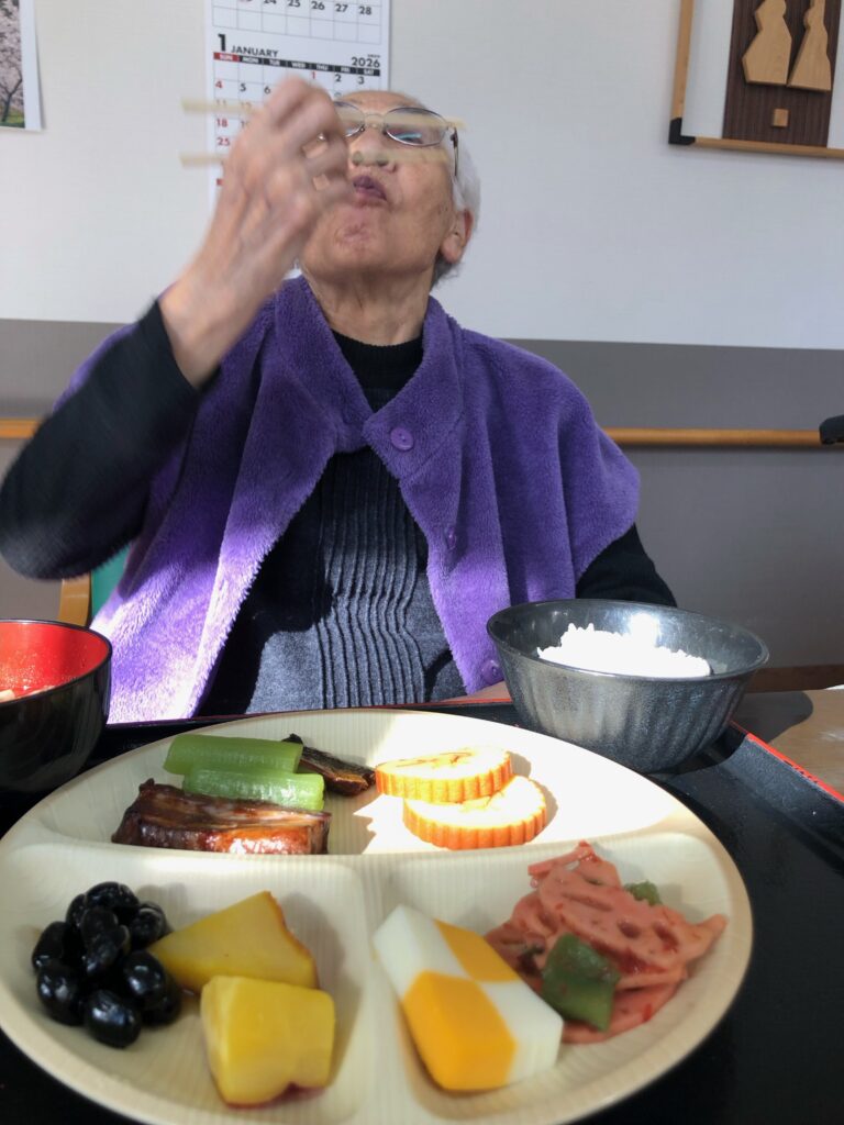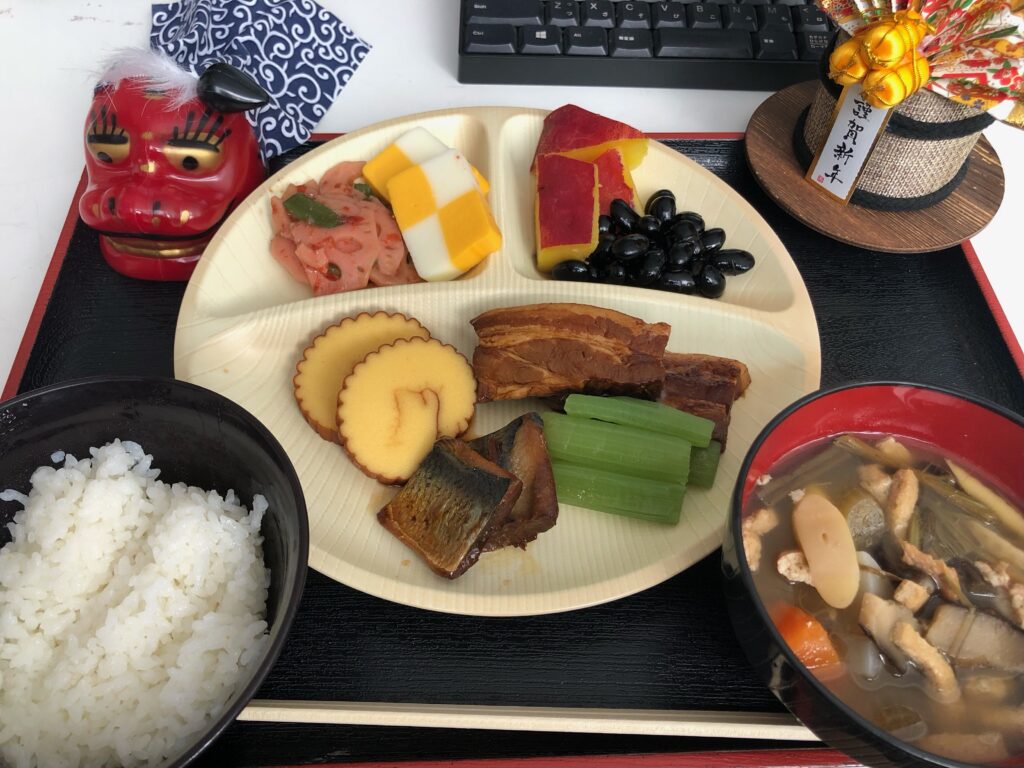 お昼からおせち料理が振舞われました~(⌒∇⌒)