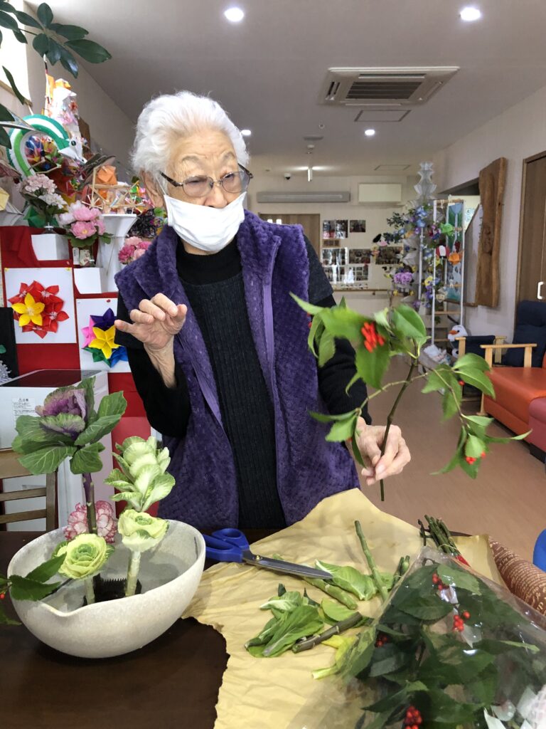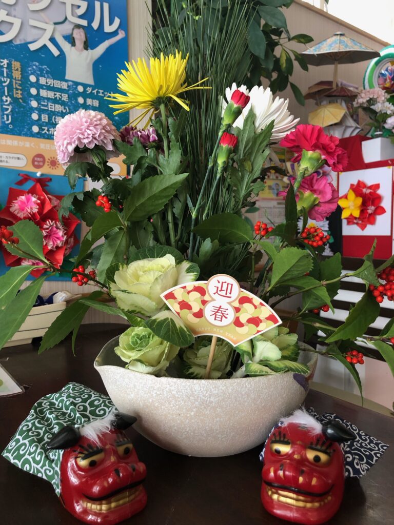 お花の師範がお正月用にお花を活けて下さいましたよ~🌸