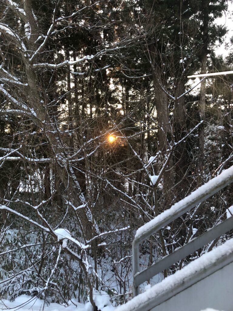 木々の隙間から見えるこのご来光は角度や高さによって見えない事も。