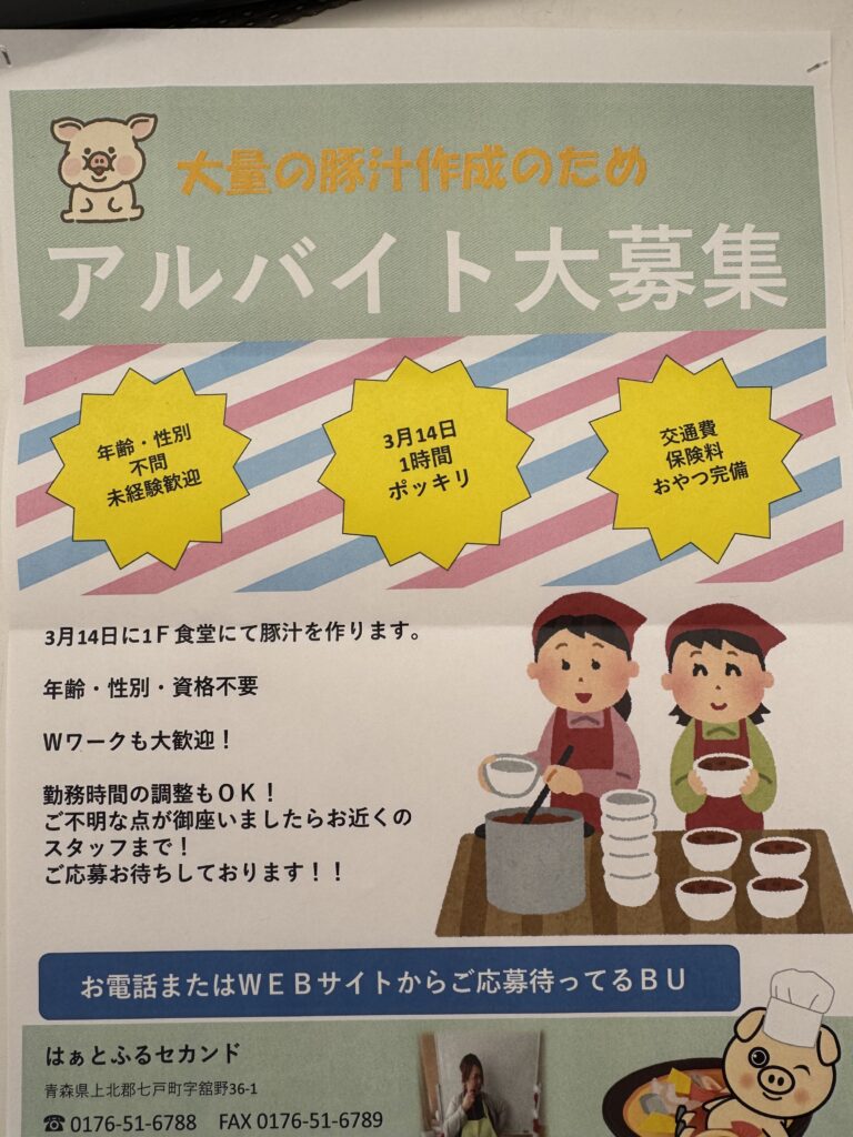 暖かくなってきたとはいえ、やはりまだ風は冷たいですから、暖かい豚汁が心も身体も暖めてくれますね😀