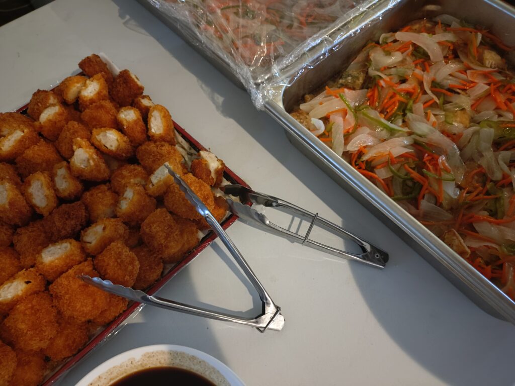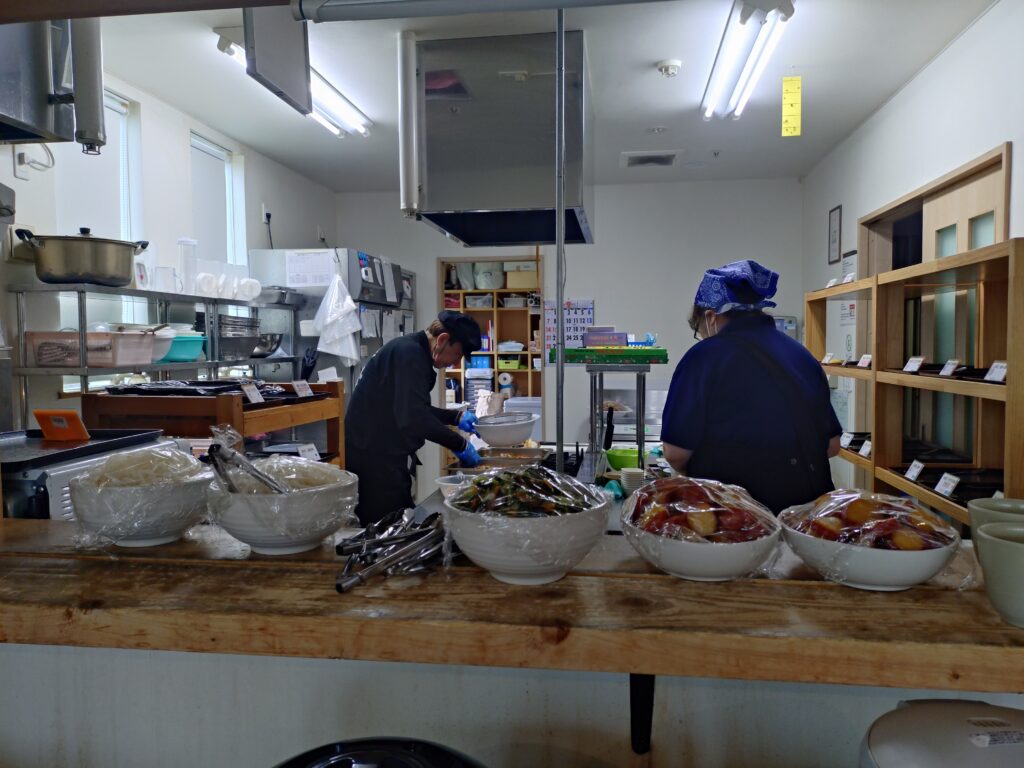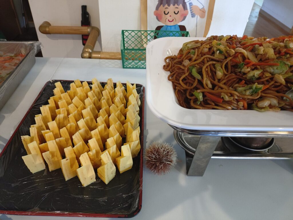 厨房のお兄さんとお姉さんが一生懸命おにぎり🍙と焼きそばを仕上げて下さっています(;'∀')