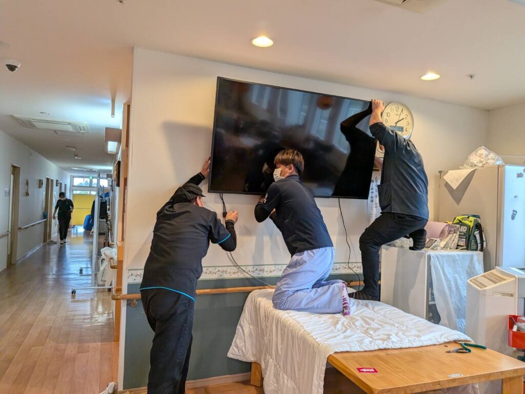 無事に取り付けが出来た時はスタッフや入居者様から拍手が起こりました!!!
