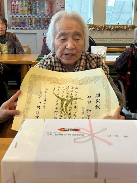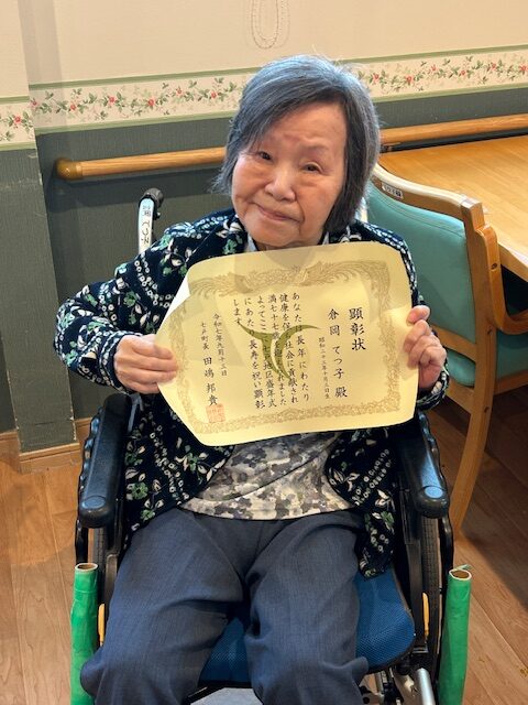今日は七戸町から長寿のお祝いとして賞状と盛年式記念品が届きました✨